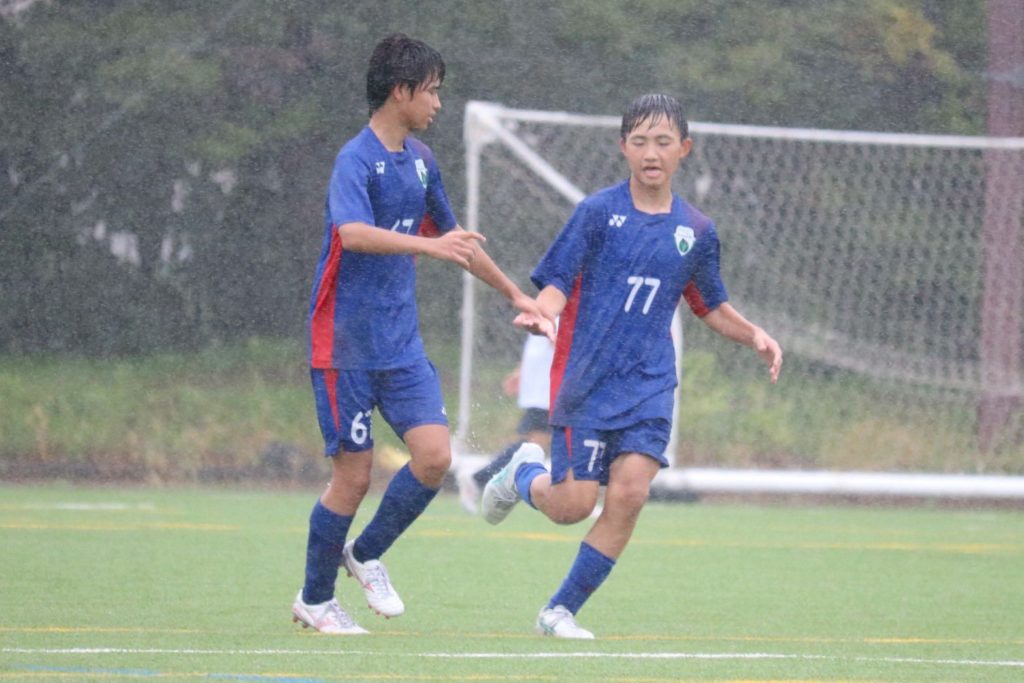 強風、雨の中風下でスタートした前半はなかなかボールが前に進まない中でスーパーゴールで先制される難しい展開でした。後半は風上に立ち相手陣内に押し込んで後半15分までに3ゴールを奪い逆転勝利となりました。色々な環境の中でも勝つ強さを身につけながら来週からのクラブユース北信越大会に向けて準備していきます。応援ありがとうございました!