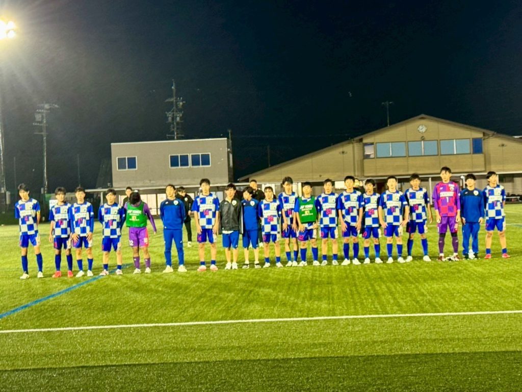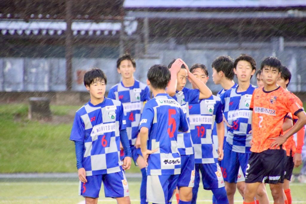 強風、雨の中風下でスタートした前半はなかなかボールが前に進まない中でスーパーゴールで先制される難しい展開でした。後半は風上に立ち相手陣内に押し込んで後半15分までに3ゴールを奪い逆転勝利となりました。色々な環境の中でも勝つ強さを身につけながら来週からのクラブユース北信越大会に向けて準備していきます。応援ありがとうございました!